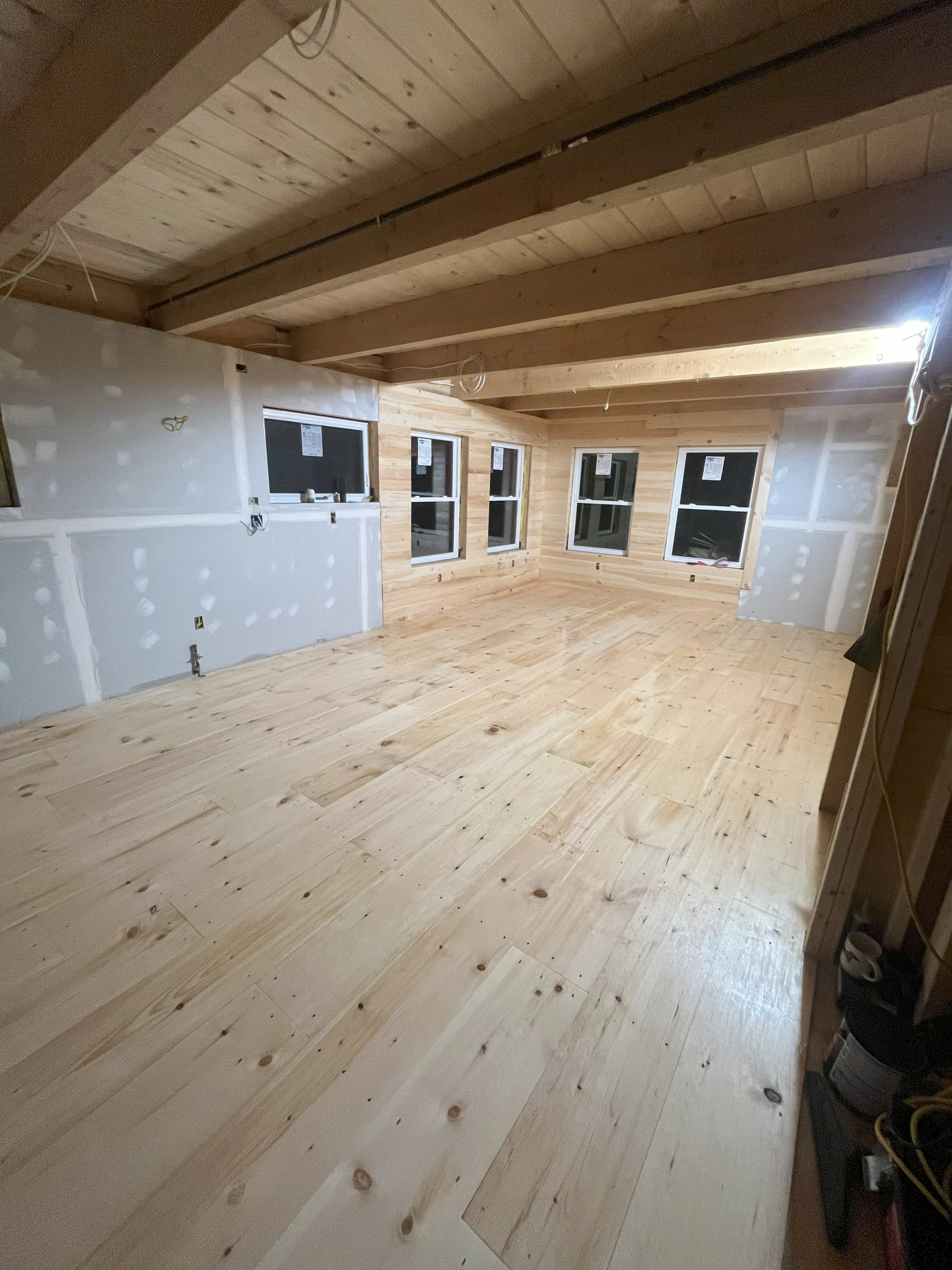 We use full-dimension, solid wood for all trim, flooring, and structural components. You won’t find plastic trim, composite decking, or finger-jointed material in our builds. Solid wood is stronger, longer-lasting, and avoids the synthetic chemicals found in manufactured substitutes. It’s safer for builders, safer for homeowners, and can be locally sourced to support regional forestry and milling operations.