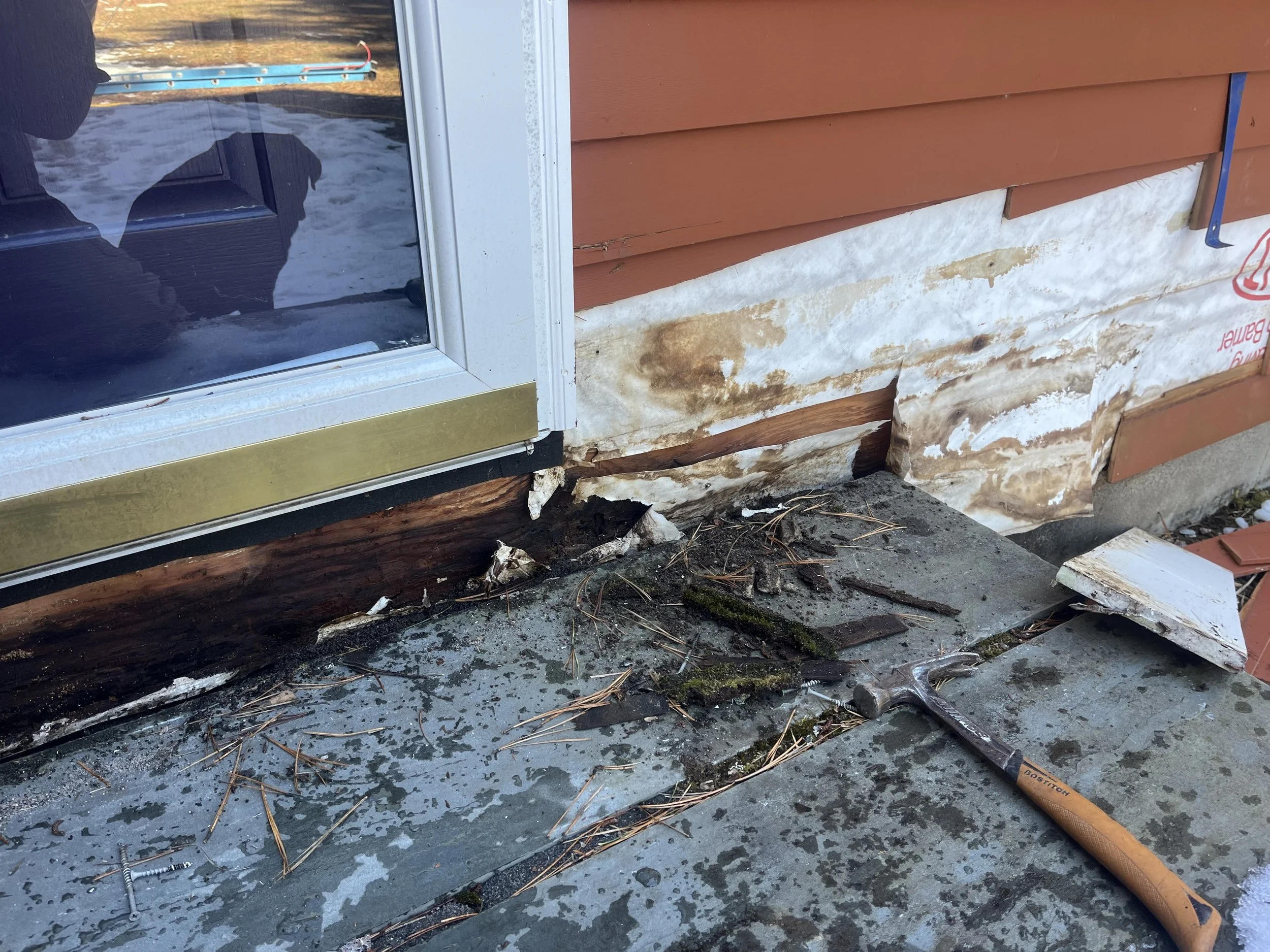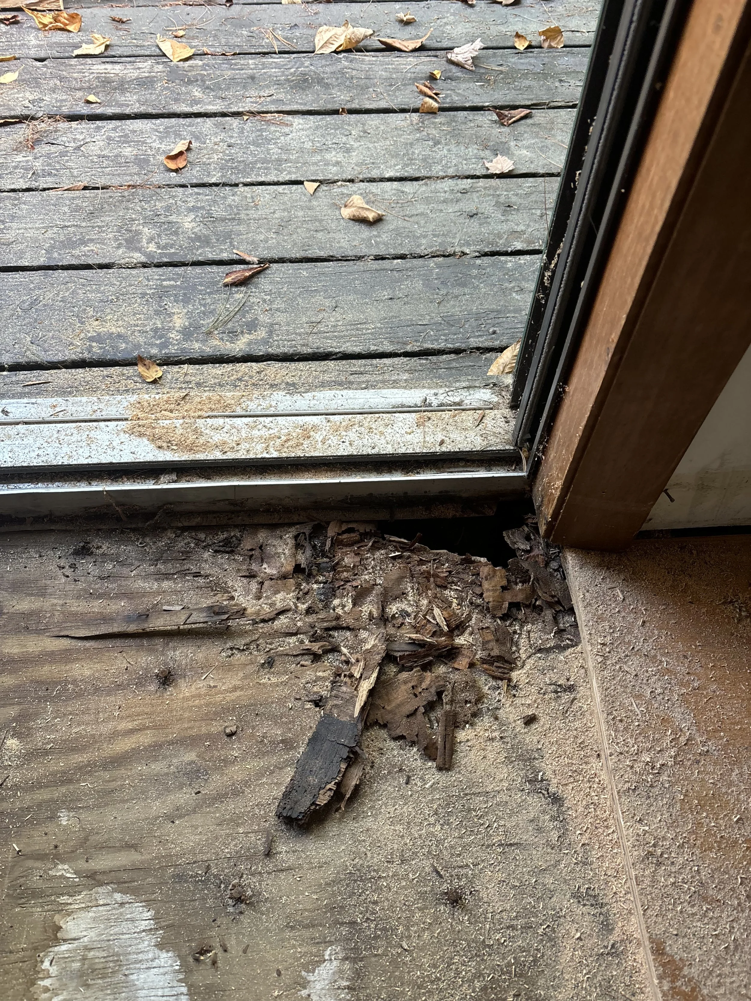 Decks, porches, roofs over doors, anything tied into the structure. Make sure they’re properly flashed and not trapping water.Look at areas where materials change or meet